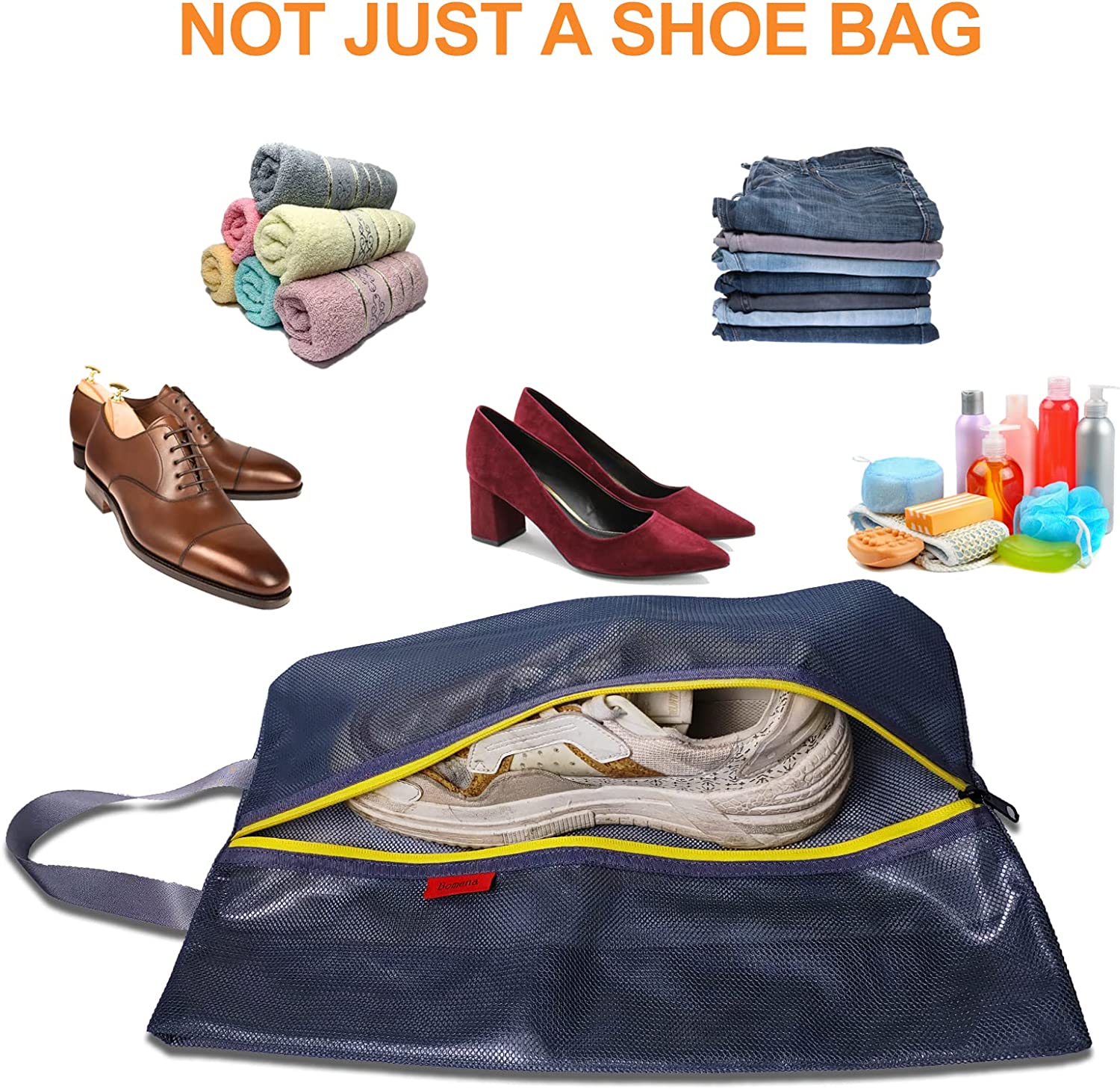 The translucent mesh design of the shoes bags for travel can efficiently and readily detect the objects in the bag. There is no need to open, it is easy to differentiate, it is easy to reach, and it is fresh and clean. A shoe bag for travel is quite useful for both home use and vacation.